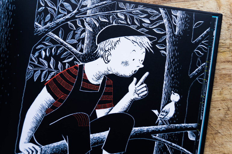 Мы раньше слушали уже сказку Прокофьева, но только взяв в руки книгу, я узнала, что Петя - пионер. Главный герой получился у художника колоритным, но живых пионеров Хаакен явно не видал. Ибо это ж просто каноничный хулиган и шалопай. Кепи, бычья шея, вызов во взгляде. Зуб даю, что в правом его кармане сигаретка, а в левом - ножик-бабочка :) Оно, в общем-то, сразу видно, что волк обречён.