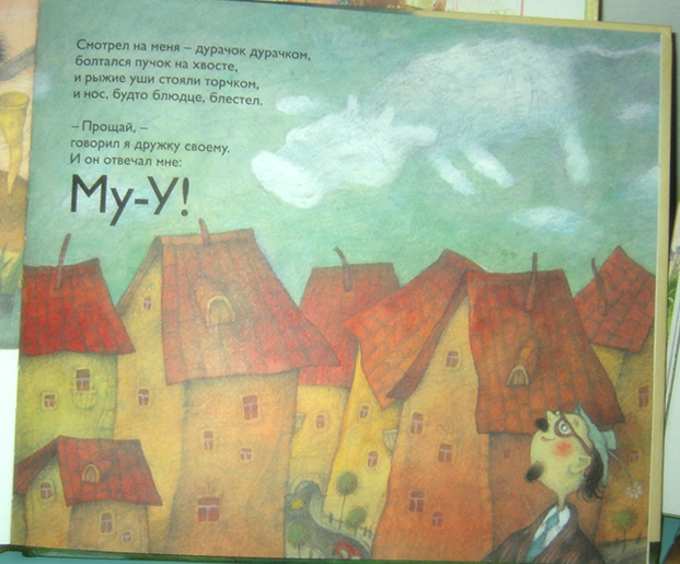 1. Оранжевые домики с оранжевыми крышами из "Глупой лошади" Вадима Левина с илл. Е. Антоненкова