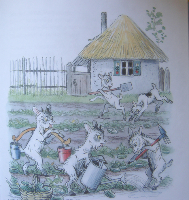 2. Островерхая в домике козлят ("Мой щенок и другие стихи в рисунках В. Сутеева")