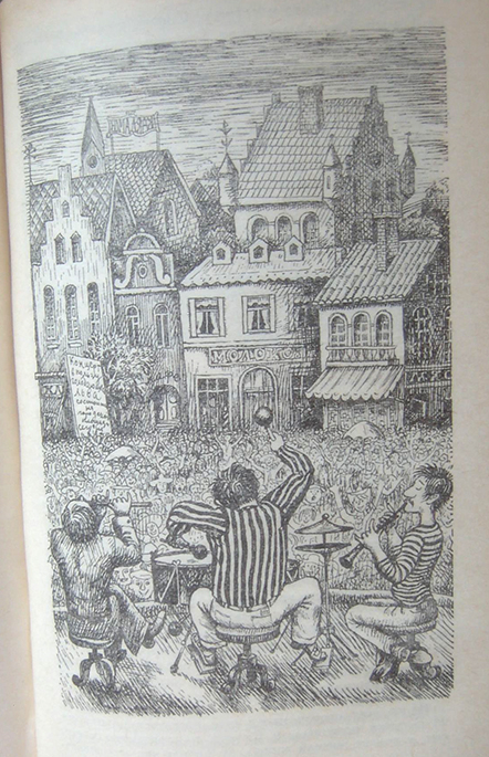4. В "Ключе от сказки" Романа Сефа Юрий Ващенко тоже нарисовал дома с крышами всех видов: тут и крыша ракушка