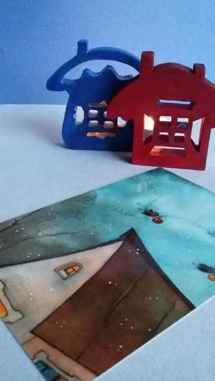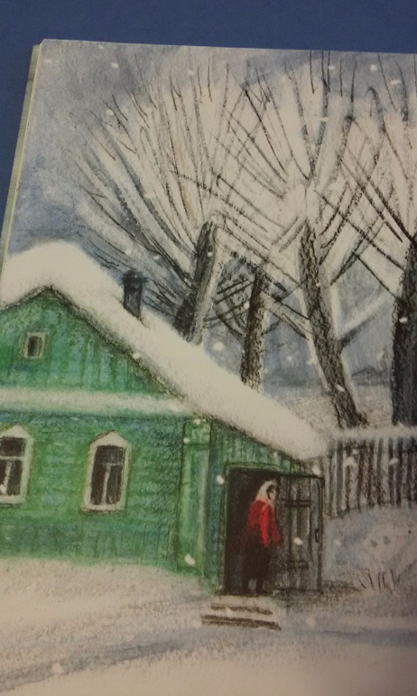 Эта чудесная открытка была вложена в не менее чудесную книгу. Белые мухи полетели, зима укутала деревню. Наверняка, под этой крышей снятся только добрые сны)) С.Востоков "Зимняя дверь". Художник Мария Воронцова