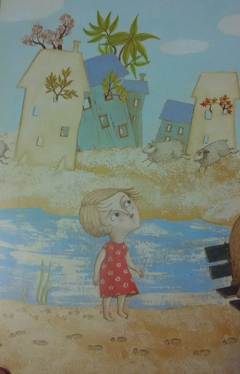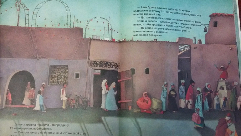 Совершенно плоские крыши, на которых так и манит погонять на самокате. Главное не провалиться куда-нибудь. Надо упросить Ребекку Дотремер, чтобы настил покрепче нарисовала, да черепицу попрочнее. "Веселые истории про Насреддина".