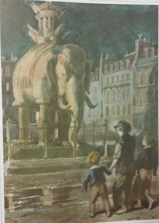 Как, пожалуй, ни один мальчик не отказался бы взобраться на деревянного слона на площади Бастилии и потрогать крышу башни на его спине, и заглянуть в ее окошки. "Гаврош". Художник Анатолий Иткин.