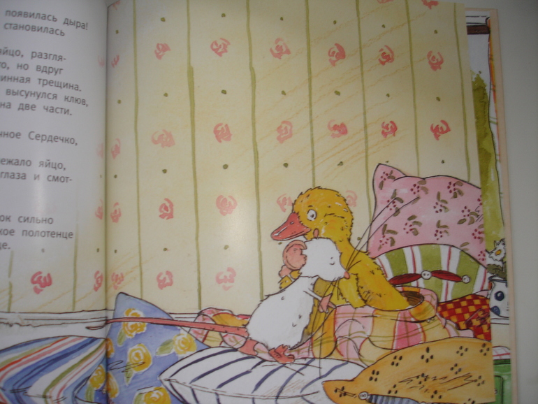 Но мы-то знаем, что происходит с яйцом. Ну так и это в конце-концов треснуло, и из него появился утёнок.