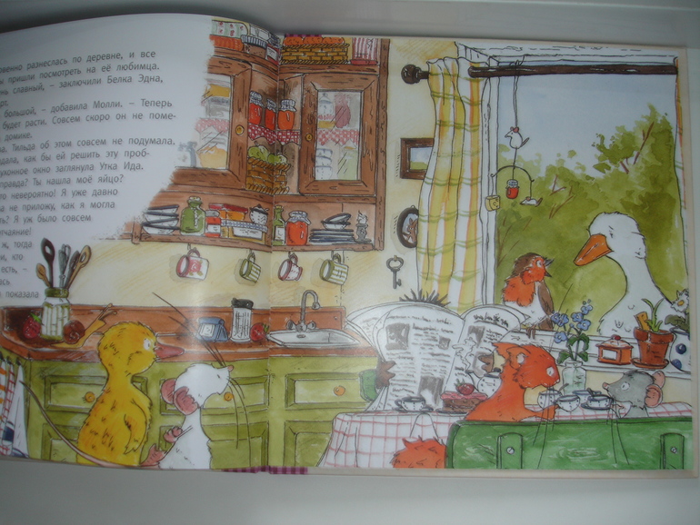 Конец истории таков: прознав, что у мышки появился птенец, появляется мама-утка, благодарит Тильду, а в последствии иногда заходит в гости на чаепития по средам со своим выводком.