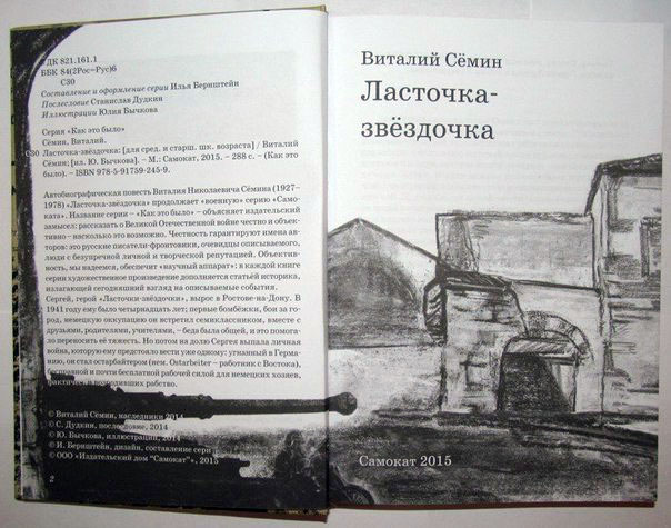 Возвращаясь к "Ласточке-звездочке" (кстати, так звала главного героя - Сергея, его мама) - книга снабжена фактической информацией о судьбе остарбайтеров в Советском Союзе, а также фактической информацией о военных событиях в Ростове.