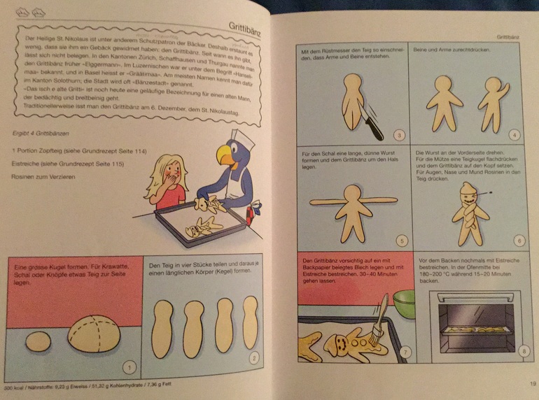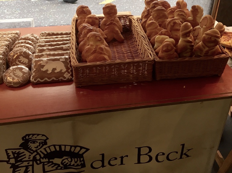 В предпраздничные дни во многих булочных или уличных палатках можно купить специальную выпечку - человечков, которую во французской части называют рождественскими человечками, а в немецкой - гритибанцами.