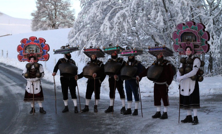 Многие традиции характерны только для своего региона или существуют только в отдельных кантонах или общинах (да-да швейцарцы уже много веков живут общинами и не собираются от этого отказываться). Некоторые традиции могут показаться странноватыми, а некоторые очень понятные и родные)) Например, где-то на северо-востоке страны отмечают старый Новый год! В старо-новогоднюю ночь жители наряжается в костюмы, а на головах у них то ли шляпы, то ли кукольные дома, то ли настоящие ботанические сады.