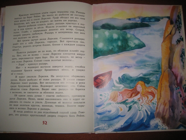 Она мне понравилась даже больше, чем пигмейские истории (хотя и та очень хороша). В книге пересказаны три известных средневековых легенды: "Летучий Голландец", "Гамельнский Крысолов" и "Лорелея". И не просто пересказаны, а адаптированы Софьей Прокофьевой для детей младшего школьного возраста. Книга отчасти пересекается с прекраснейшим сборником издательства "Студия 4+4" с иллюстрациями Г.А.В. Траугот - в обеих книгах присутствует легенда "Лорелея". Я сравнивала тексты и обнаружила довольно существенные отличия, хотя в целом они близки.