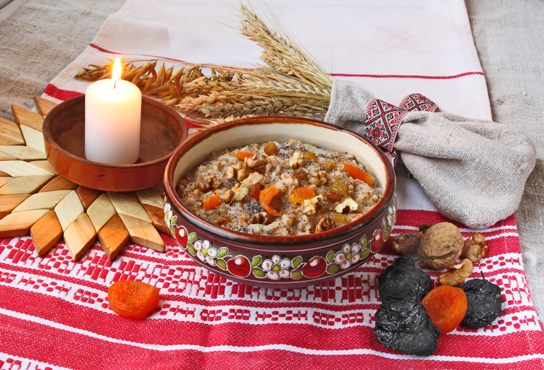 Одним из главных блюд является кутья. Это вареная пшеница или рис, к которой добавляют мак, мед, изюм, орехи. Интересно то, что кутью из риса я попробовала первый раз здесь, дома у нас так не готовят. А еще помню в детстве был изюм в сахаре, назывался морские камешки, так вот мама всегда добавляла его в кутью.