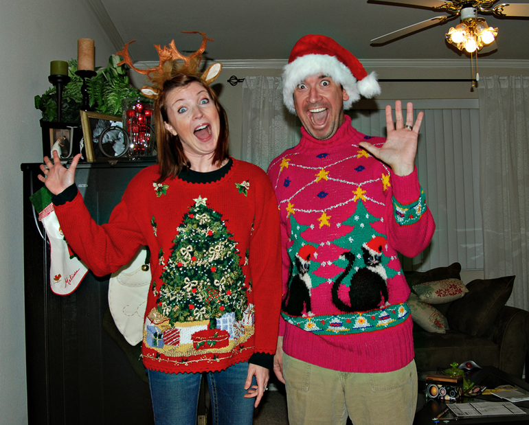 6) Фотосессия с оленями или вечеринка в Уродливых Свитерах ("Ugly Christmas Sweaters"). Принято считать, что традиция подобных вечеринок зародилась в Ванкувере в 2002 году. Ежегодно, в Ванкуверском Бальном Зале проходит вечеринка «Уродливых Свитеров» с раздачей призов за самый вызывающе-рождественский свитер. Так же подобные вечеринки традиционно уже стали устраивать почти в любом канадском доме. Все приглашенные приходят в свитерах с рождественской тематикой. Чем больше на свитере будет огоньков, оленей, елок и снежинок - тем больше шансов на успех. Китч, абсурд, ирония, воображение - и главный приз Ваш! J Если не найдете достаточное количество единомышленников для вечеринки, можно устроить фотосессию для семьи в Рождественских Свитерах.