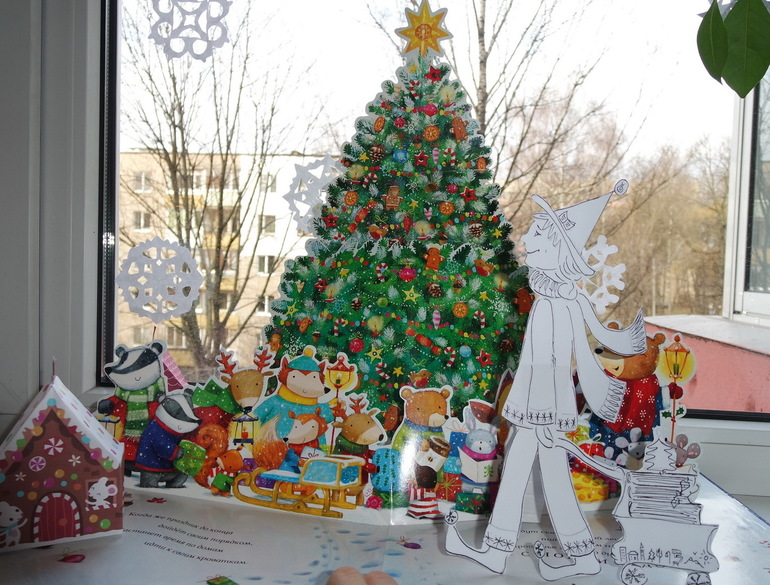 Пока мы просыпались и завтракали, Думка успел пробежаться по книжным полочкам в поисках зимних книг, одобрить большинство из них и достать одну из самых любимых книг-панорамок Дочки, разложить ее и сообщить нам, что вот именно так, как в книжке, его встречают весело в разных странах, что путешествовать «галопом по Европам» ему очень нравится!