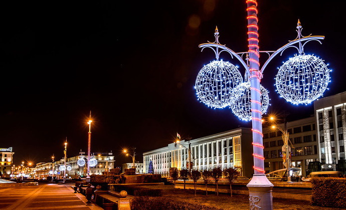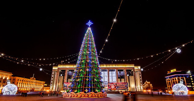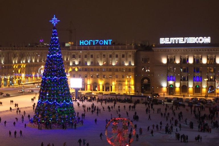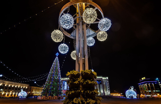 Города Беларуси украшают новогодней атрибутикой, на главных площадях устанавливают большие новогодние елки, вокруг которых в новогоднюю ночь соберутся все желающие.