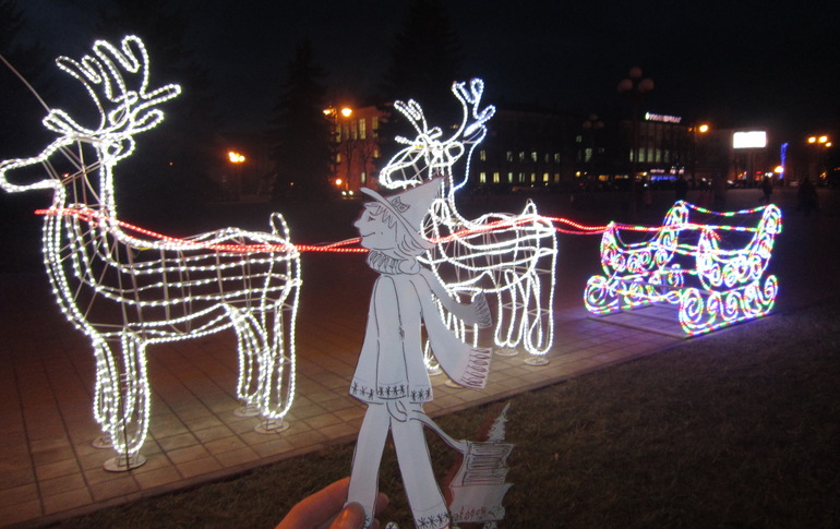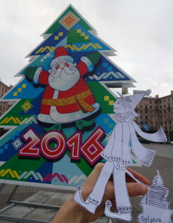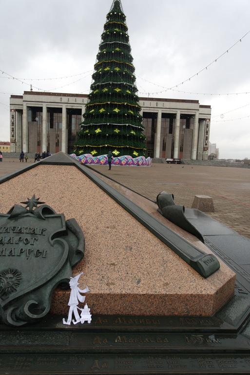 Потом Думка с серьезным видом попросил нас предоставить «сухие факты» о подготовке к Новому году в Беларуси, а ближе к обеду «вывести» его и тележечку прогуляться немного по городу Минску, а вечерком он запланировал посмотреть, как украшен небольшой городок в Минской области - Молодечно.