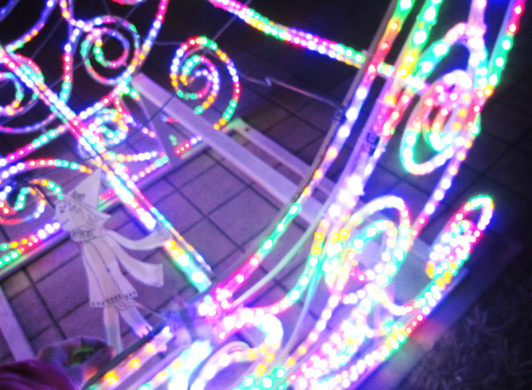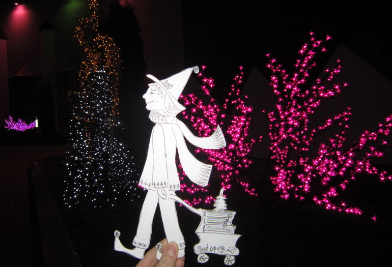 И хоть днем и вечером прогулку сопровождал большой ветер, но Думке всё понравилось, а особенно прогулка на санях из гирлянд.