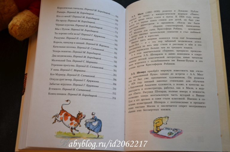 Не секрет, что мы читаем нашим детям те книги, которые любили в детстве сами, свет от которых, пронесли в своём сердце через года. Мы начали знакомство с толстым и славным Мишкой, плюшевым Мишкой, именно с этой книги Алана Александра Милна . Книга включает в себя две ранее изданные отдельные книги с циклами стихов "Когда мы были маленькие" (When We Were Very Young) и "А теперь нам шесть" (Now We Are Six).