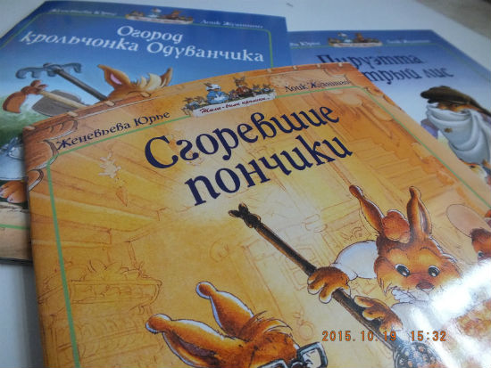 В аннотации написано, что книги до 3-х лет, но мне кажется, что именно с 3 до 4 они наиболее популярны. Сначала у нас появилась книга "Сгоревшие пончики", потом я докупила "Пируэтта и хитрый лис" и "Огород крольчонка Одуванчика".
