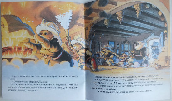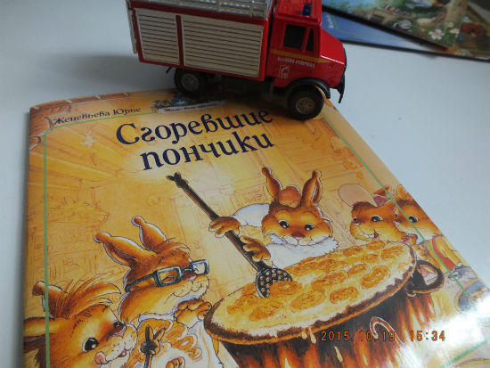 Вообще книга про то, что с огнем нужно быть осторожным. Это вынес Сема без проблем, тотчас мы играли в пожар. Строили дома из лего, я кричала "Караул! Пожар!", приезжала пожарная машина, сын все тушил и всех спасал.