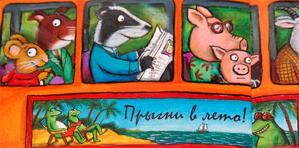 Вот на этой картинке - узнаете под кроватью? Что за книги? "Улитка и кит", кажется. Думаю, я нашла не все "секретики" в этой небольшой книжке.