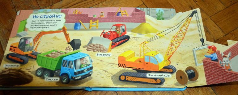 Поделюсь еще одной симпатичной находкой от Азбукварик. Книга «Что умеют машинки?» Она довольно оригинально сконструирована: звук поезда, корабля, пожарной машины, самолета, подъемного крана появляется, когда открывается разворот на странице. Работает при хорошем освещении: в каждую страницу встроен световой элемент.