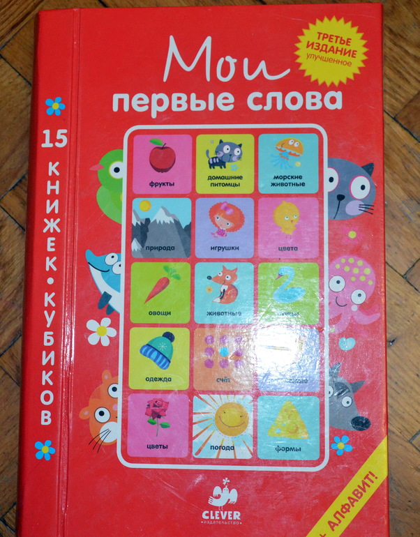 К этой же серии относится и вот такой чудо-сундучок: «Мои первые слова. 15 книжек-кубиков» на разные темы от издательства Clever.