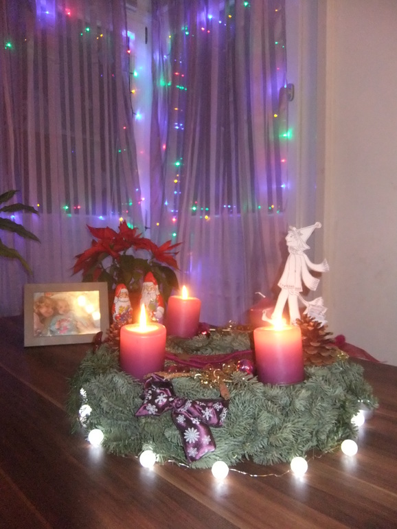 Мы тоже с ДумКой зажгли наш рождественский венок.![]()