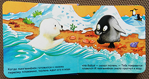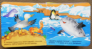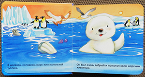 В остальном - никаких претензий. Прекрасные иллюстрации, ужасно симпатичный главный герой. Интересная и поучительная история о маленьком тюлене, который умеет поддержать в сложной ситуации, подбодрить, не бросает в беде, помогает чем может своим друзьям. В завершение истории, животные решили отблагодарить своего доброго друга, чем показали, что добро всегда возвращается.