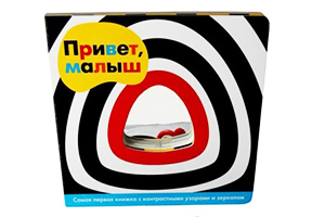 "Без текста, только картинки для рассматривания. Книжки созданы с учетом особенностей развития зрения и мышления малышей и для их стимуляции. Известно, что "цветное" зрение, способность видеть все цвета, формируется у ребенка только около 4 месяцев. Примерно с 6 недель большинство детей хорошо "видят", их зрение уже сфокусировано. Но отчетливо видеть малыши могут только контрастные черно-белые предметы и изображения. Все остальное воспринимается ими как размытые серые пятна. Дело в том, что в сетчатке глаза малыша к этому моменту в работу включились только палочки - клетки, чувствительные к слабому свету. Постепенно, по мере того, как в работу сетчатки глаза включаются колбочки, ребенок начинает воспринимать желтый и красный цвета, затем зеленый, и последним - синий."