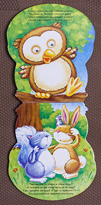 По содержанию - не восторг, но вполне себе. На каждой страничке стихотворение о жителях или растениях леса и вопрос-загадка о том, что на следующем развороте. В общем, книжечка неплохая.