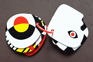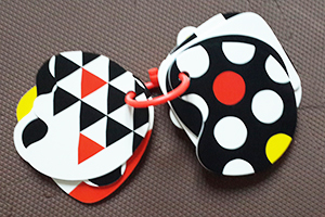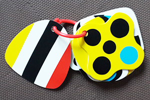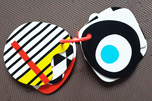 Книжка для коляски, по сути, то же самое, что и книжки "Привет,малыш!" из первого пункта. Контрастные черно-желто-белые рисунки. На резинке с кольцом для крепления к коляске или для подвешивания в любом другом удобном месте.