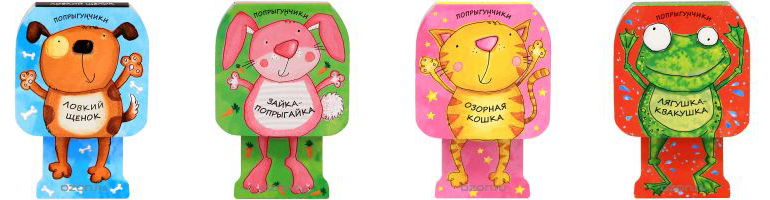 У нас две, кроме Лягушки еще есть Зайка, но он пролежал без дела, потому как у него был слишком тугой механизм, в отличии от Лягушки. Уж не знаю, от чего это зависит. Зато Лягушка долгое время была хитом, ребенок быстро разобрался, что надо делать и у него неплохо получалось. Но быстро надоело, поэтому дальше он играл с ней по-другому: не отпуская на нее надавливал - лягушка прыгает) После первых восторгов от подпрыгивания книги, сына очень заинтересовало ее устройство, и он очень старался ее расковырять и выдернуть из механизма "ножку". В конце концов у него это получилось, вот тогда и мы купили неудачного Зайку. Но утверждать, что Зайка - плохой не буду :) Просто нам не повезло с механизмом. И кстати, нигде в других отзывах я такой жалобы больше не видела.
