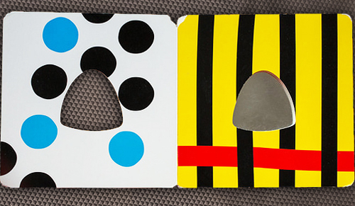 Всего издательство "Полоски" выпустило три книги для младенцев с контрастными рисунками. Я распечатывала подобные картинки и развешивала вокруг ребенка. Объединить картинки в форме книги задумка интересная, ребенок остался доволен: пожалуй, это у нас одни из самых потрепанных книжек. Далее из аннотации: