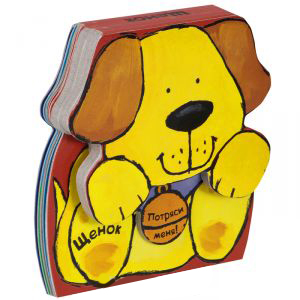 Это тот случай, когда книжка снаружи гораздо интереснее, чем внутри. Очень милая собачка, на шее медальончик, который по идее должен звенеть, но по факту этого почти не слышно. Зато его приятно теребить. К качеству претензий нет, голова и лапки из очень толстого наслоенного картона, остальные странички довольно тонкие, но крепкие.