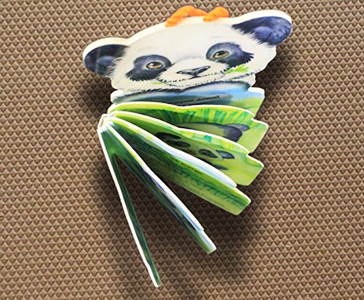 Небольшого формата, последняя страничка больше, чем остальные и выступает сверху - это голова главного героя. В данном случае малышки панды. Главный плюс книги - петелька, сын за нее только и тягает. Издательство не подвело и на этот раз, качество на уровне, картон приятный, глянцевый, странички не очень толстые, но крепкие. Иллюстрации приятные, по сути, изображено только несколько героев (панда, ее мама, птичка) на фоне поля и бамбука, приятном глазу. Для малышей в самый раз, для детей 2+ может быть скучновато.