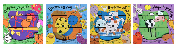 Стишки ну очень простенькие, для малюток хороши, но малютки еще не смогут применять книгу по назначению, а для ребенка, который уже заинтересовался пазлами и которому много читают, они будут совершенно не интересны. Но я и не ради стихов ее покупала.
