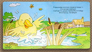Купила книжку вопреки негативным отзывам исключительно в качестве игрушки: на обложке есть подвижные элементы, можно покачать крыльями утенка.