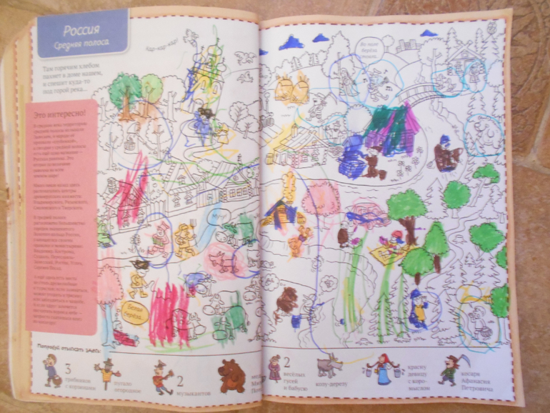 Так как Фантазёрка увлекается географией, эта раскраска полюбилась ей сразу и бесповоротно!! Потешные герои, оригинальные задания и широкое поле для "художественной деятельности":)