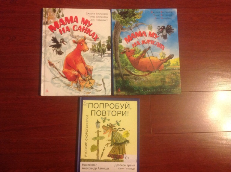 Попались Ваньке в библиотеке книжки про маму Му... Полюбились просто неимоверно, давненько я столько раз не перечитывала одно и тоже... Очень понравилась книжка со скороговорками, так понравилась, что прикупили её при следующей закупке книг в лабе.
