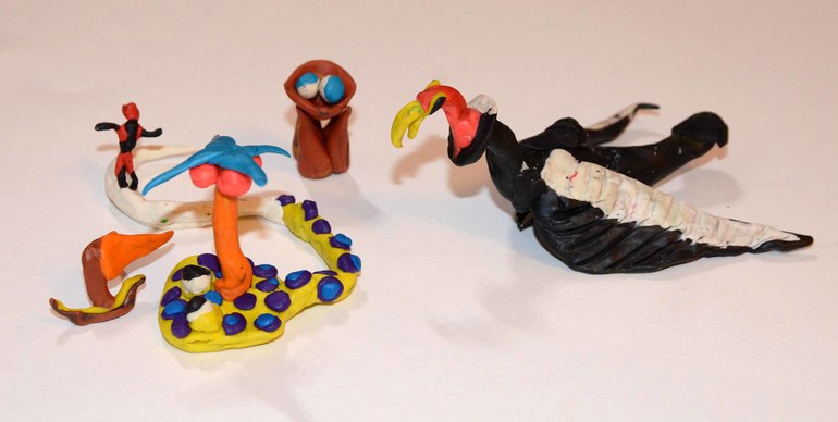 Сказки из дорожного чемодана, тоже зачастую перечитываем. Сыну нравится, дочке категорически не выносит чтение подобного плана.... Из пластилина купила совсем недавно, понравилась тем, что слеплены более реалистично и очень много работы со стеком( сын все мелочи предпочитает вылепливать, хотя можно просто узор нарисовать стеком).
