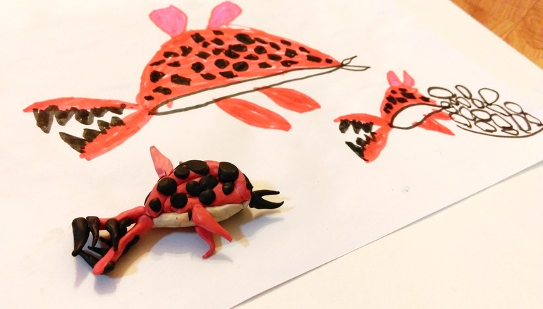 А это Рыба - мухомор. Сначала нарисовал, а потом по рисунку слепил)))