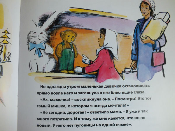 Тут тоже я думала-думала, что нам эта книжка не нужна. Но нет, оказалось, что нужна. Даже очень. Такая простая история о том, как мишка в магазине ждал, что его кто-нибудь купит. Дождался.