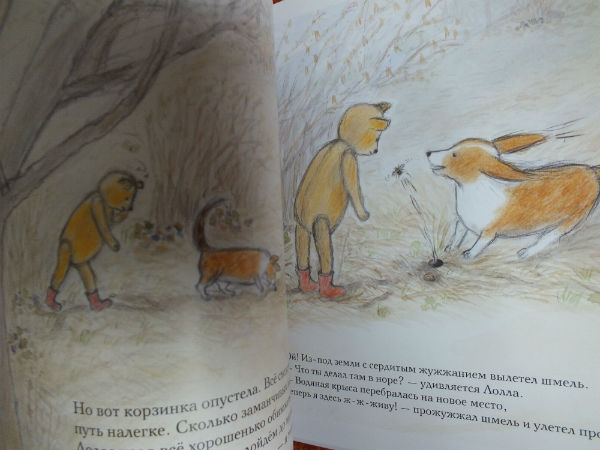 Текста совсем немного. Книга в мягкой обложке. Но она такая ладненькая, понятная и милая. Просто прелесть. Очень нам с сыном пришлась по душе. Но мы любители медведей)