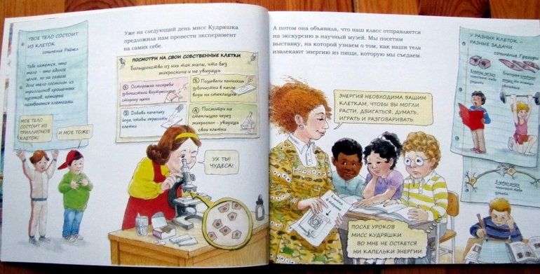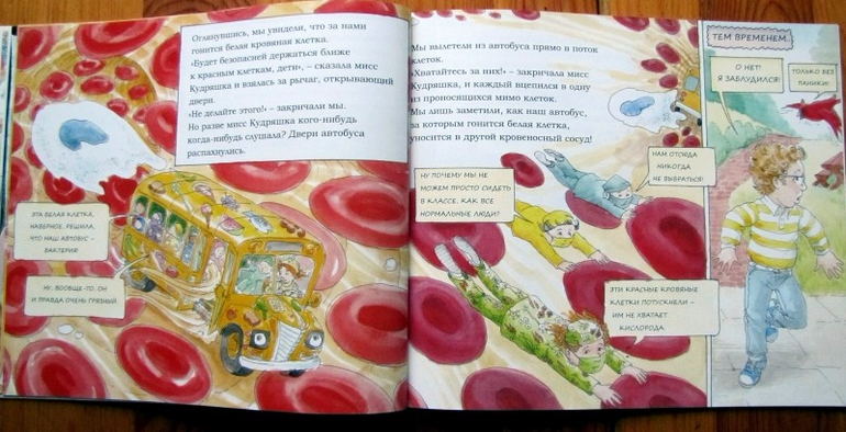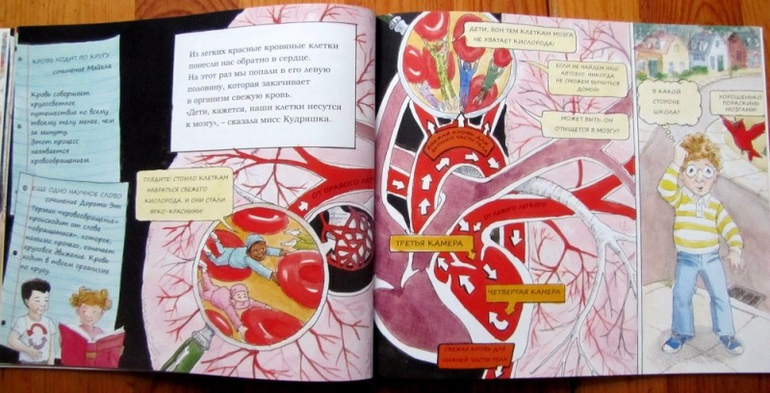 Если книгу будет читать ребенку мама или папа, прелесть ее потеряется - все-таки это комикс, требующий самостоятельного прочтения. Таня пока разглядывала картинки, а я просто поясняла тот или иной момент. Но сама подача информации мне очень понравилась. Буду ждать, пока девица моя подрастет и сама изучит и картинки, и термины, и всю эту хитрую работу механизма под названием «человеческий организм».