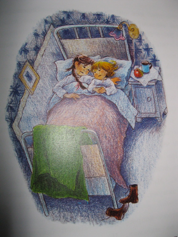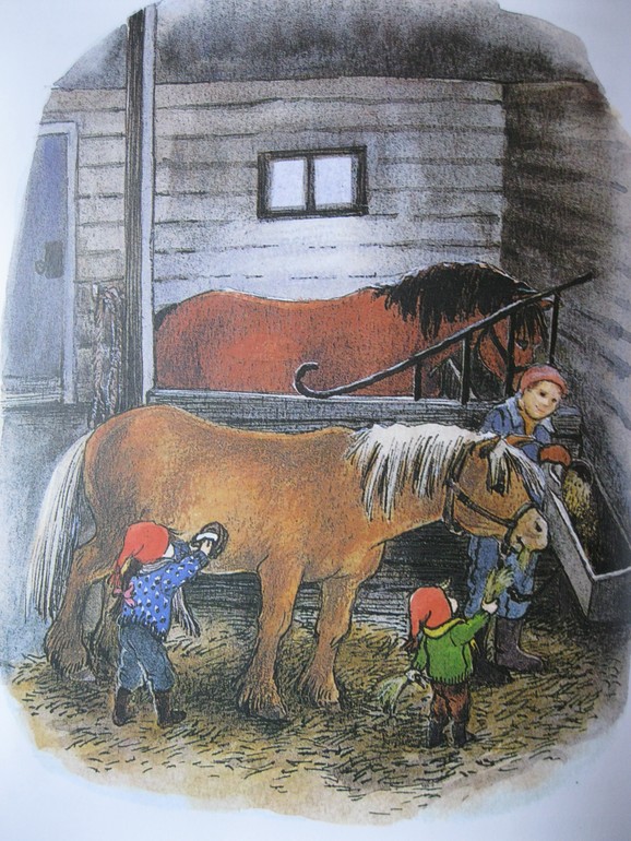 "Мадикен оглядела темноватую конюшню. Вообще-то ей самой хотелось думать, что ясли младенца Иисуса стояли именно здесь, на Яблочной горке.