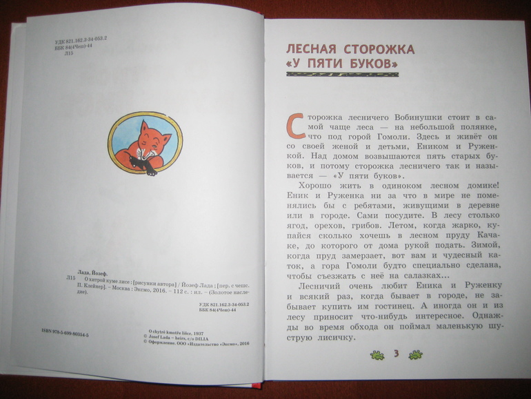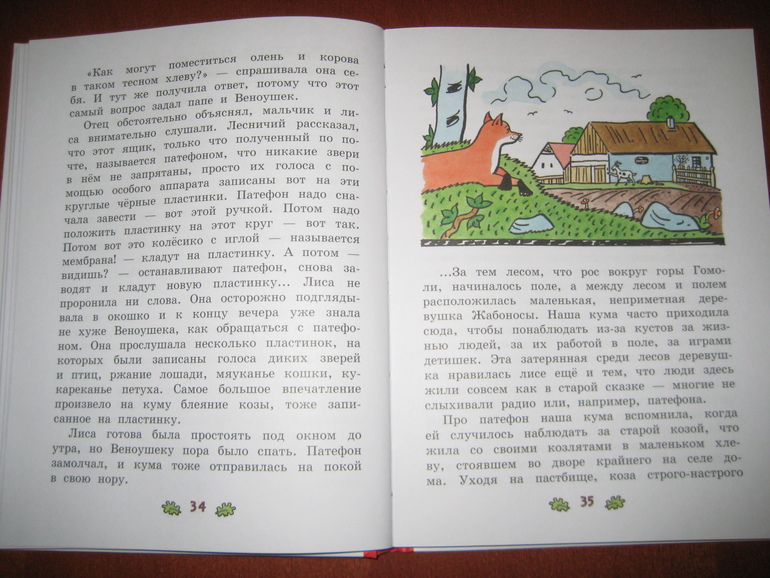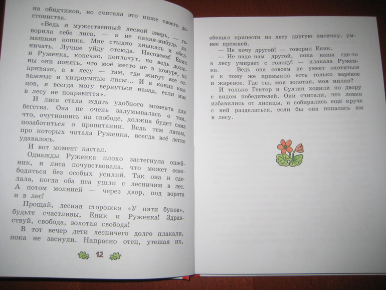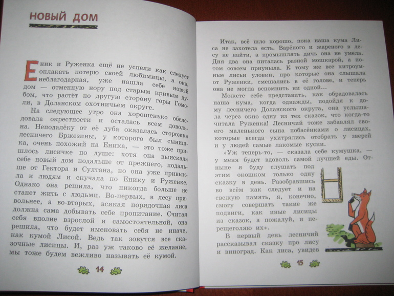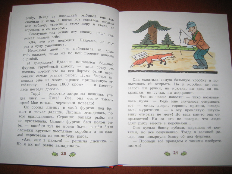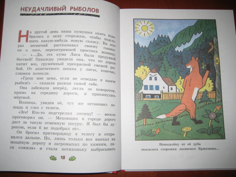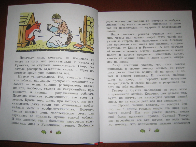 "Книга мне очень понравилась. Здесь главный герой - лисичка. Она не просто лесной зверек. Она умная и очень хитрая. Она любит слушать сказки и умеет разговаривать человеческим голосом. Но больше всего мне понравилось, что лисичка стала лесничим!"