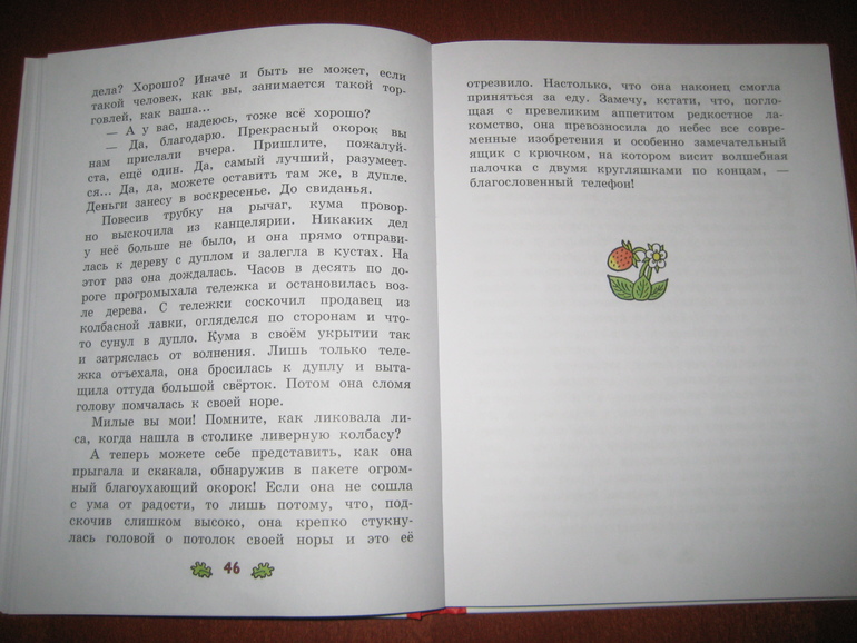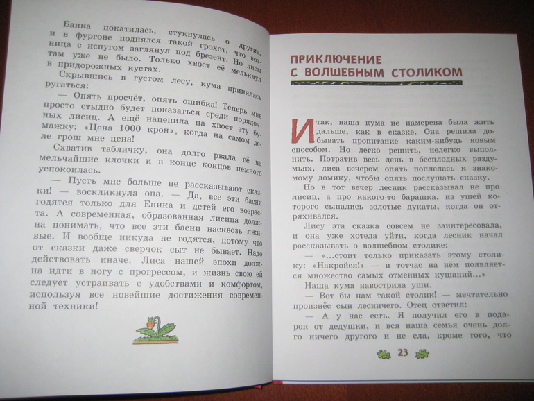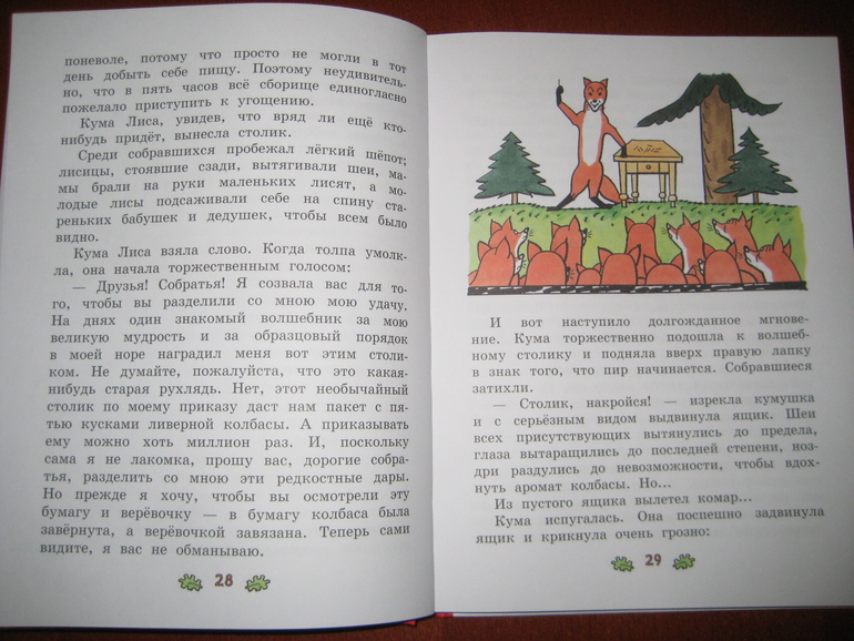Очень жаль, доложу я вам, дорогие дети, что не довелось вам полюбоваться на вытянутые лица двух неудачливых ловцов, когда они вместо лисы обнаружили весьма нахальную записку на клочке оберточной бумаги"...