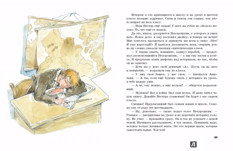 "Большую перемену" издатели маркировали "12+" и запустили в серии "Мальчишки и девчонки". Мне терзают подозрения. что ни мальчишкам, ни девчонкам данная вещь интересна не будет. Это безоговорочно взрослая книга, снабженная детскими иллюстрациями. Мысли и разговоры у героев взрослые, самим им лет ...дцать. Самый молодой - Нестор, но и тот из мальчишечьего возраста вышел давно. На что угодно поспорю, что книга все-таки взрослая.
