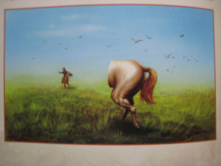 На фоне этого выглядит удивительной значительно более длинная у Чуковского сцена поедания коня волком, прямо-таки со смакованием кровавых деталей: "Волк въедался в мою лошадь все глубже и глубже..."