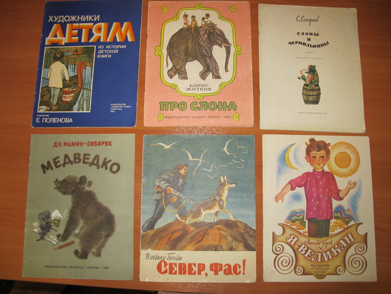 1) «Про слона» Борис Житков, изд-во «Малыш», 1971 г. Художник в. Трофимов.