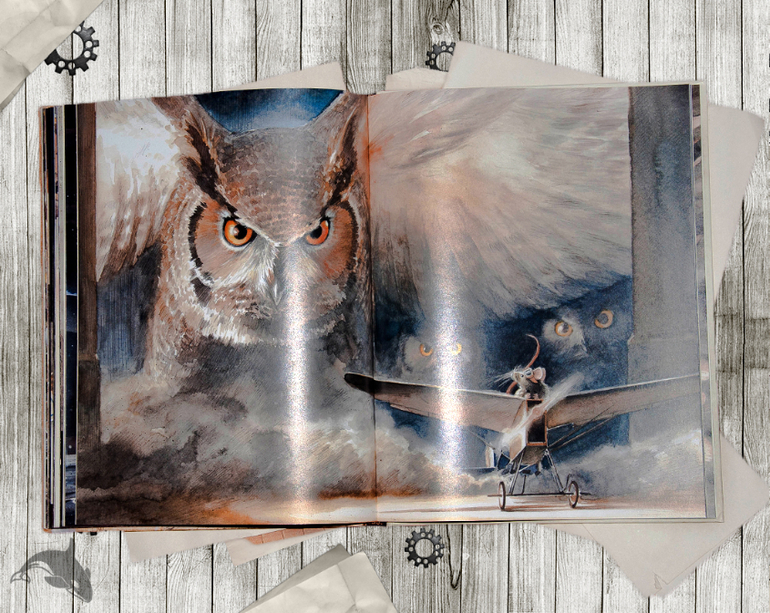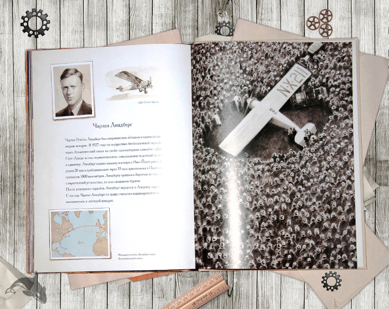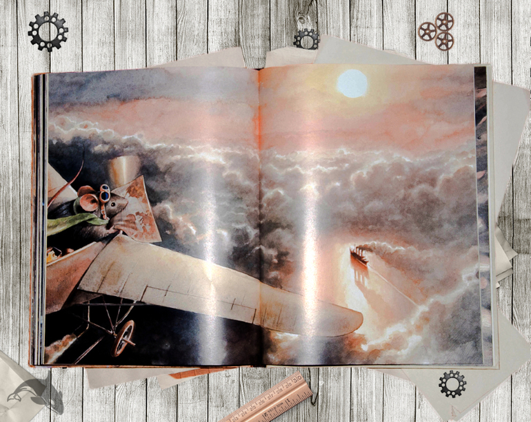 Точность и реалистичность рисунков поражает, заставляет снова и снова рассматривать все до мельчайших деталей. Сама история маленького мышонка - это история воздухоплавания, история перелета Чарльза Линдберга из Нью-Йорка в Париж 20-21 мая 1927 года. Линдберг стал первым кто на своем самолете "Spirit of St. Louis" совершил трансатлантический перелет в одиночку. Его полет продолжался 33 часа 30 минут.